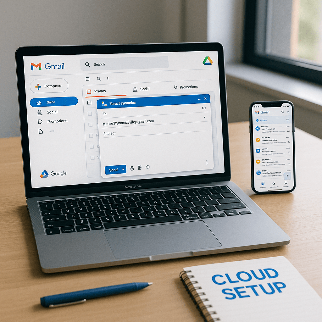 We’ll create, configure, and secure your business emails (Gmail, Outlook, custom domains), plus connect you to tools like Google Workspace or Microsoft 365.